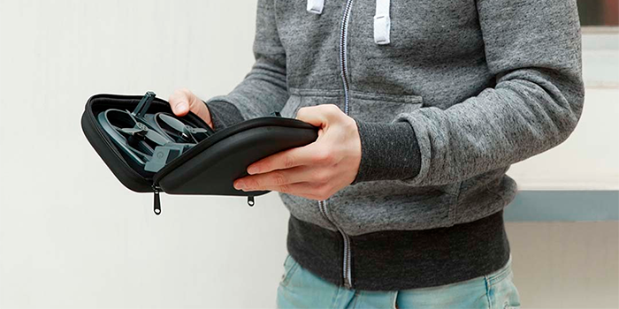Основным преимуществом квадрокоптера iDol Smart Drone является его компактность и мобильность, ведь в сложенном виде его размеры составляют всего 226 x 144 мм, так что он может поместиться даже в небольшом футляре, при этом его вес составляет всего 360 грамм. После извлечения из футляра дрон буквально раскрывается как книга и прочно фиксируется защелками. Затем на него надеваются пропеллеры и аппарат готов к работе.