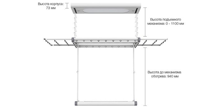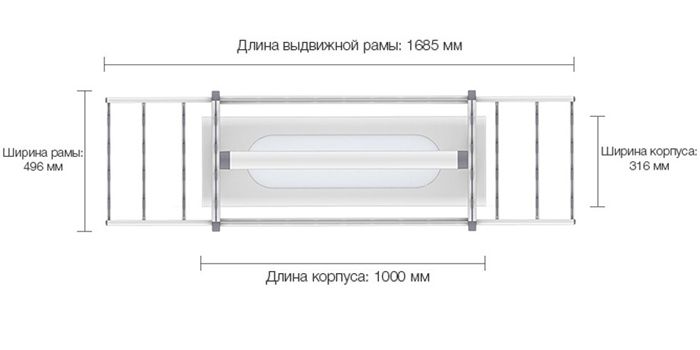 Размеры сушилки (верхняя): 1000 х 316 х 73 мм