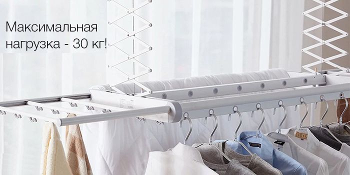 Благодаря установке на потолок, сушилка не занимает много места и удобно расположиться даже в самое небольшой квартире.