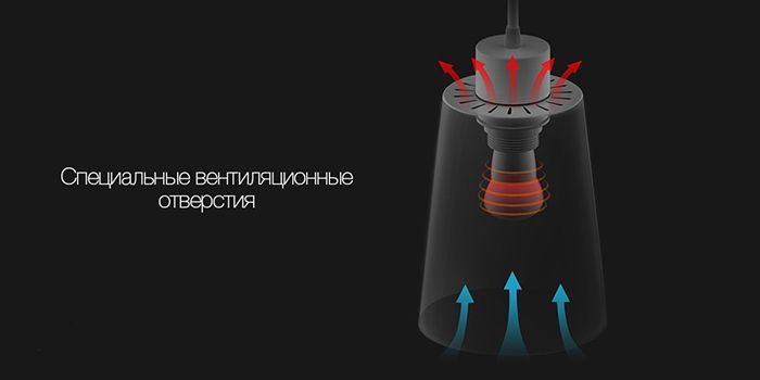 Специальная структура рассеивает тепло через верхние вентиляционные отверстия, позволяя воздуху свободно циркулировать внутри, это позволяет значительно увеличить жизнь лампы, в том числе LED.