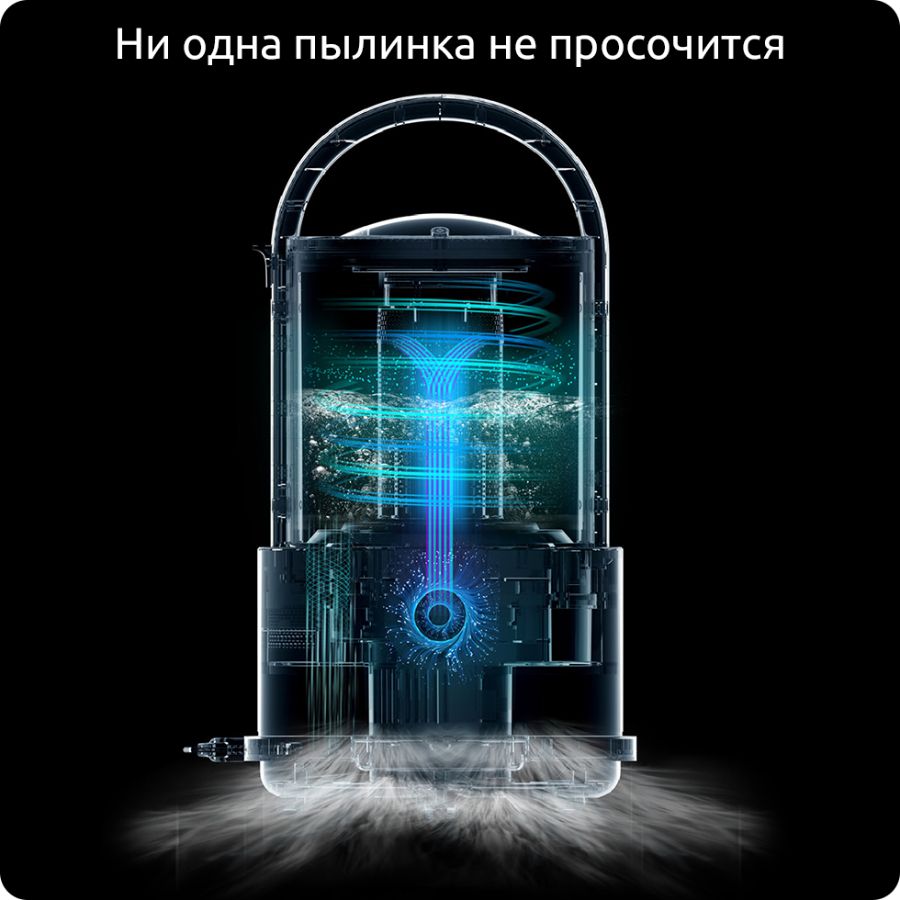 Фильтр способен задерживать даже самую мелкую пыль. Центробежная сила отделяет частицы пыли и грязи от воздуха. Четырехступенчатая система фильтрации включает в себя вентилятор, HEPA-фильтр диаметром 150 мм, фильтр для защиты двигателя и фильтр выходящего воздуха. Благодаря такой системе фильтр остается чистым и не забивается мусором и, соответственно, сохраняется высокая мощность всасывания на протяжении всего процесса уборки.