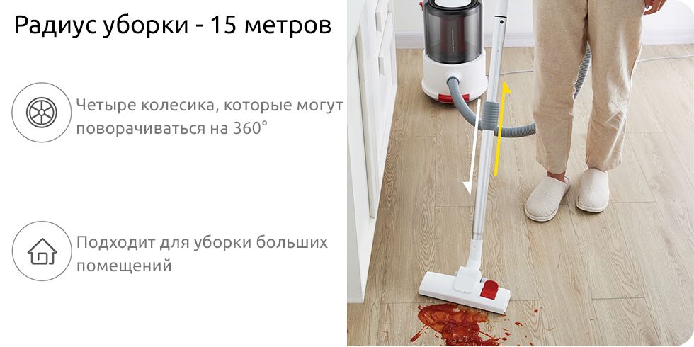 Пылесос Deerma Vacuum Cleaner TJ210 способен выполнять все бытовые задачи, недоступные обычным пылесосам. Он подходит как для сухой, так и для влажной уборки. Вы сможете одновременно осуществлять влажную уборку пола и сразу же высушивать его.