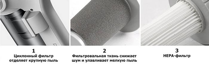 В пылесосе предусмотрено целых 3 ступени фильтрации, что позволяет аппарату избавиться от волос, пыли и прочих загрязнений, очищать воздух и формировать благоприятную атмосферу в доме.